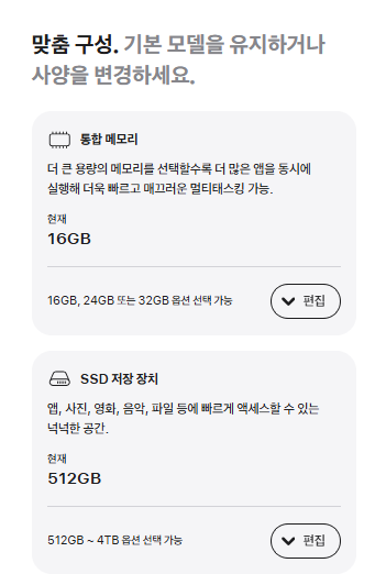 메모리는 구매 이후 절대로 업그레이드가 불가능합니다. 추가 비용 약 27만원을 5년으로 나누면 연간 5~6만원 차이입니다. 이 정도라면 처음부터 32GB를 선택하는 것이 훨씬 현명한 투자라고 판단했습니다.